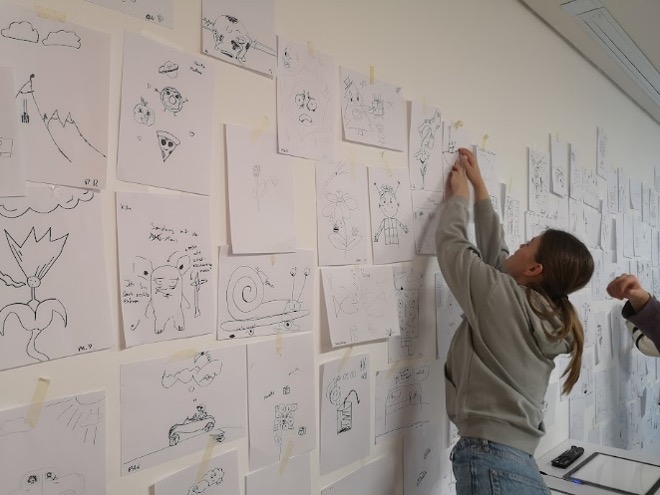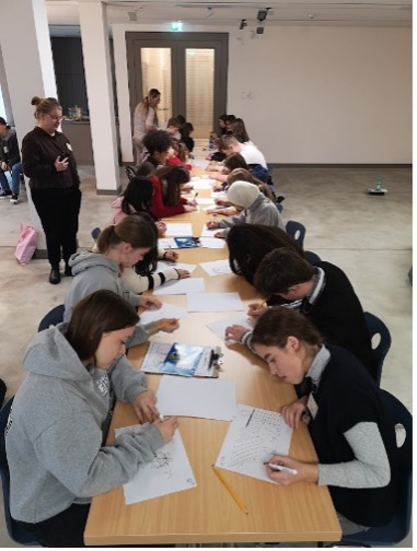 Der zweite Tag begann mit einer humorvollen Aufgabe: Selbstporträts der Müdigkeit. Dabei lernten die Schülerinnen und Schüler, dass wenige Details wie Augen oder Mund einen Ausdruck prägen.