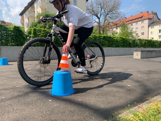 Der Mountainbike-Hindernis-Parcours orientierte sich an den Anforderungen der Abiturprüfung im Mountainbiken. Die Fahrerinnen und Fahrer mussten einen engen Slalom absolvieren, eine Wasserflasche aufnehmen, einige Meter transportieren und sie auf einem Eimer absetzen. Danach folgte eine liegende Acht in einem engen Rechteck, die ohne Überfahren der Seitenlinien gemeistert werden musste. Im Anschluss galt es, vier Hütchen korrekt einzufädeln (zwischen Vorder- und Hinterrad) und schließlich den Sprint ins Ziel zu bewältigen. Jeder Fehler – wie das Berühren eines Hütchens, das Absetzen des Fußes oder das Überfahren einer Linie – führte zu zwei Strafsekunden. Ziel war es, den Parcours so schnell und fehlerfrei wie möglich zu meistern.